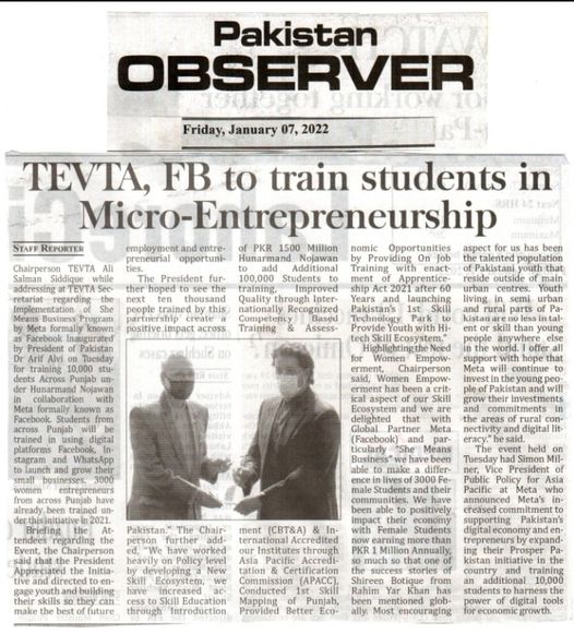 Chairperson TEVTA Mr. Ali Salman Signed MoU today with Mr. Nabeel Qadeer CEO DirAction PVT. LTD to Collaborate for Development of E-commerce skilled force in Punjab, by Empowering TEVTA Students to become self-Sustainable through Enhancement training, and opportunity to set up/ grow Digital business and create socio- economic impact. Diraction Pvt. Ltd will facilitate in
