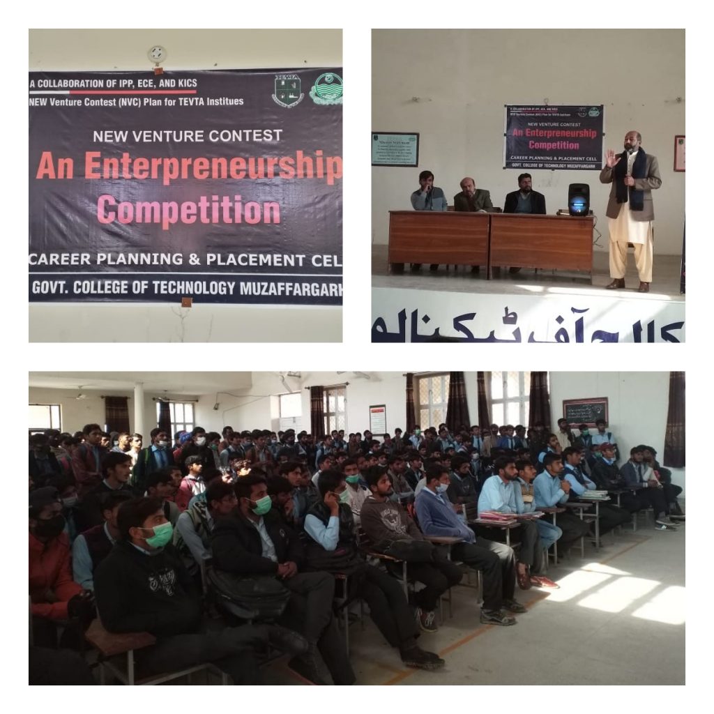 In light of TEVTA Punjab vision 2023 and under the leadership of Director General Placement, Mr. Aamer Aziz, an awareness session on NVC was conducted at Government College of Technology – G.C.T Muzaffargarh for Entrepreneurship Competition to motivate and inspire young entrepreneurs to transform their business dreams to reality. All trainees and pass outs can participate by submitting their Business Ideas.