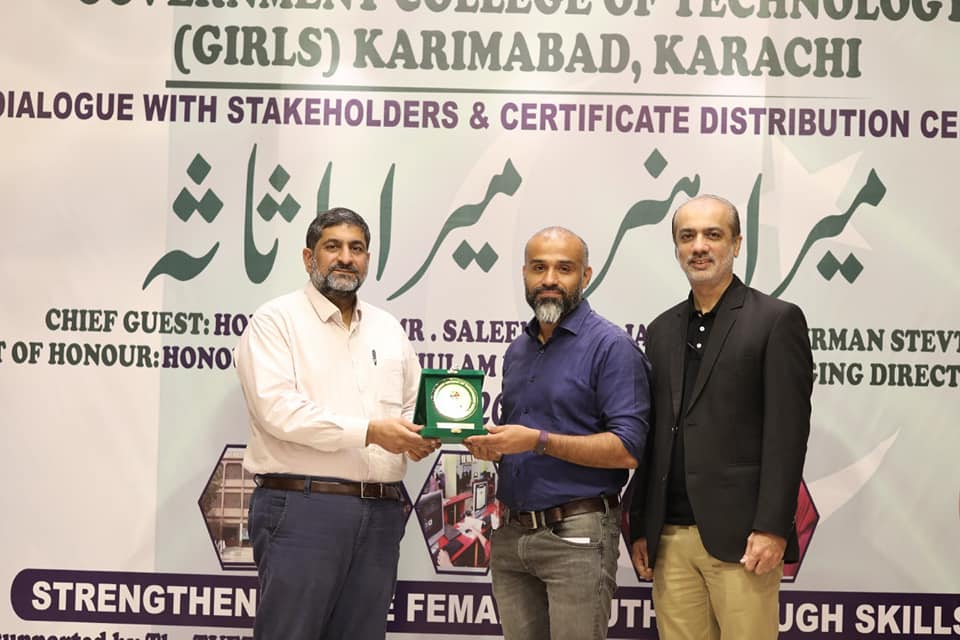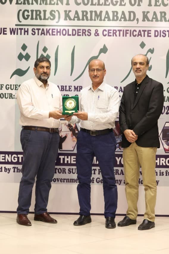 Glimpse of the event organised by Government College of Technology Girls Karimabad, Karachi, A Stakeholder Dialogue & Certificate Distribution Ceremony in regard to the project “STRENGTHENING THE FEMALE YOUTH THROUGH SKILLS”, supported by the 𝐓𝐕𝐄𝐓 𝐒𝐄𝐂𝐓𝐎𝐑 𝐒𝐔𝐏𝐏𝐎𝐑𝐓 𝐏𝐑𝐎𝐆𝐑𝐀𝐌 on 𝟐0𝐭𝐡 𝐎𝐜𝐭𝐨𝐛𝐞𝐫 𝟐𝟎𝟐𝟏.