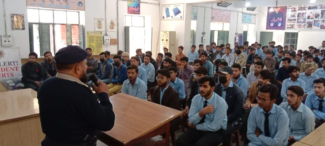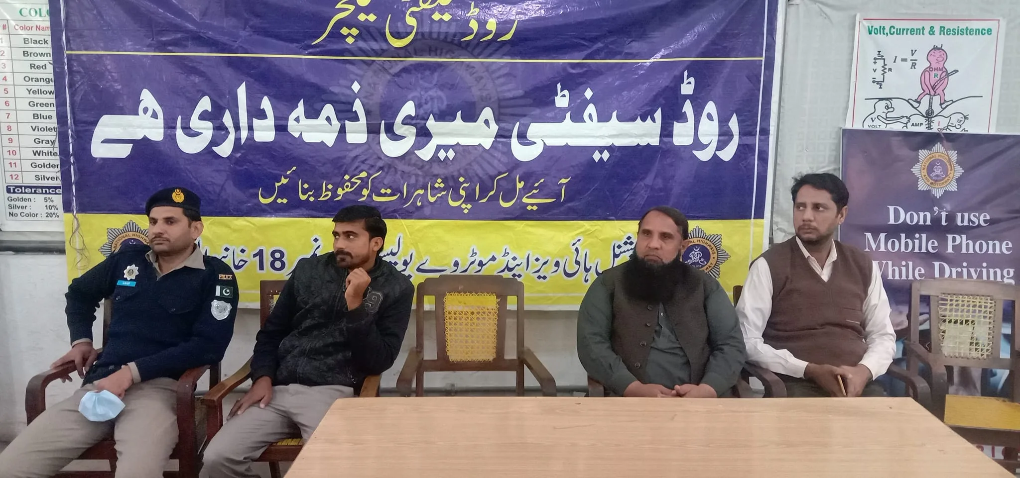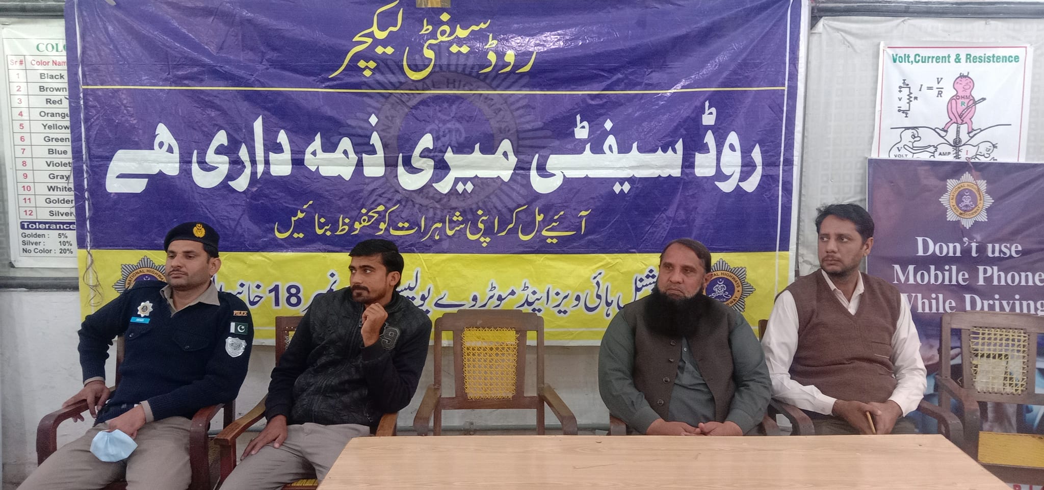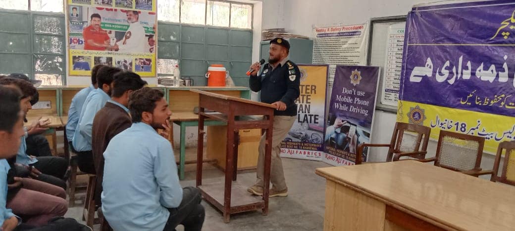 نیشنل ہائی ویزاینڈموٹرویزپولیس بیٹ خانیوال میں ڈی آئی جی صاحب سنٹرل زون اور ایس پی /سیکٹر کمانڈر سنٹرل 2-،ملتان ندیم اشرف وڑائچ کی ہدایت پرراؤ محمد اقبال ڈی ایس پی /چیف پٹرول آفیسرخانیوال کی زیر نگرانی ایڈمن آفیسر/ انسپکٹر محمد یونس نے گورنمنٹ ٹیکنیکل ٹریننگ انسٹیٹیوٹ خانیوال میں روڈ سیفٹی کے حوالے سے روڈ سیفٹی لیکچر کا اہتمام کیا۔جس میں پرنسپل ذولفقار علی صاحب، عبدالروف بھٹی صاحب چیف انسٹرکٹر مرزا آصف رضا اکاؤنٹس آفیسر و دیگر اساتذہ کرام اور طلبہ کی کثیر تعداد نے شرکت کی۔تمام شرکاء کو روڈ سیفٹی کی اہمیت اور ٹریفک قوانین بارے مکمل آگاہی فراہم کی گئی۔