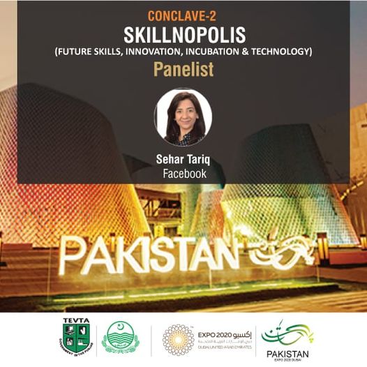 سحر طارق، پبلک پالیسی مینیجر (فیس بک گلوبل) TEVTA کے کانکلیو – 2 – Skillnopolis دبئی ایکسپو میں آج دوپہر 12 بجے (متحدہ عرب امارات کے معیاری وقت کے مطابق) میں شرکت کریں گی۔