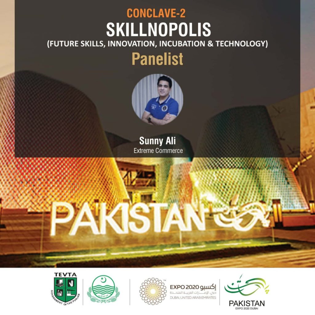 ٹاپ ای کامرس ایکسپرٹ جناب سنی علی، بانی، ایکسٹریم کامرس TEVTA کے کانکلیو – 2 – Skillnopolis دبئی ایکسپو میں کل دوپہر 12 بجے (یو اے ای کے معیاری وقت) میں شرکت کریں گے۔