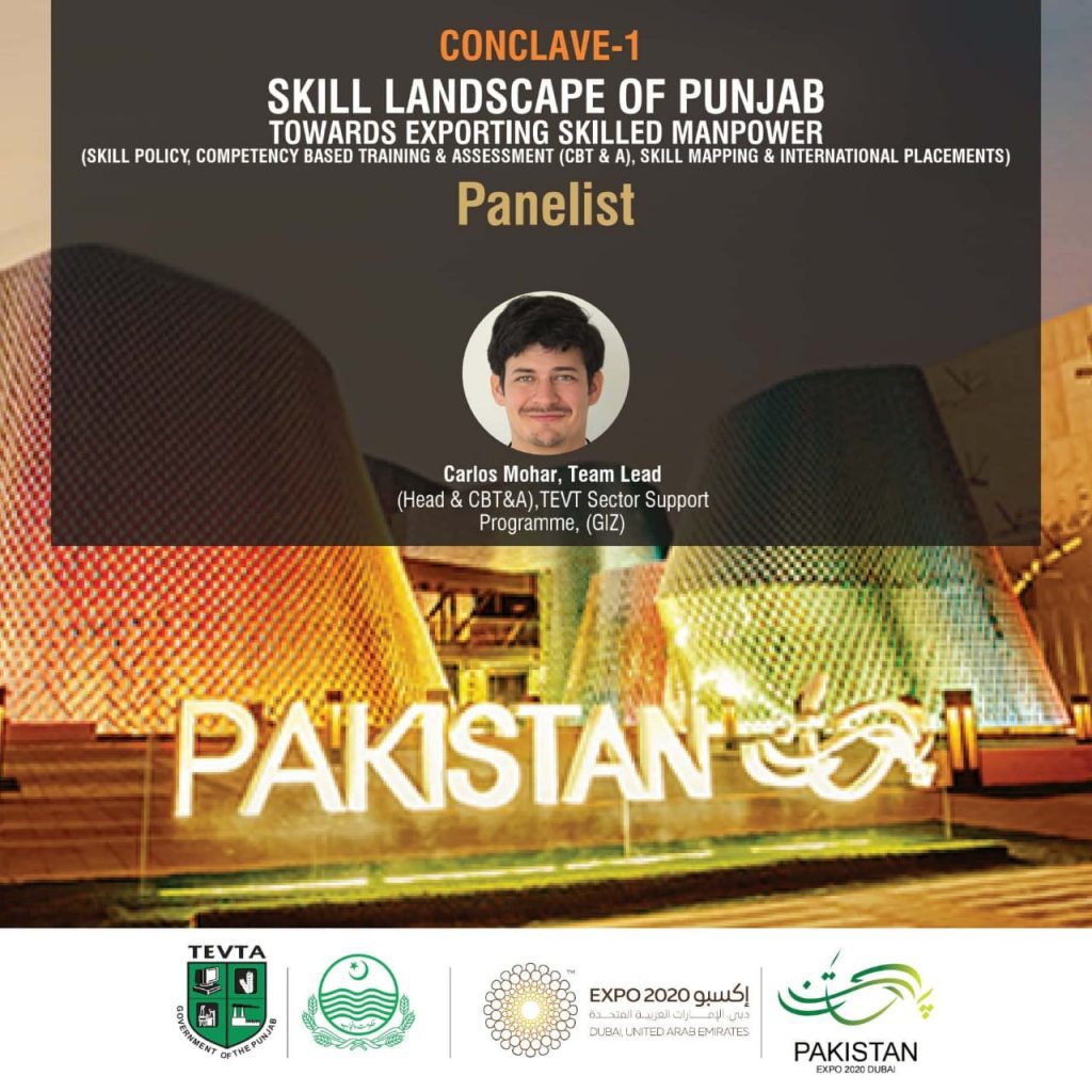 مسٹر کارلوس موہر، ٹیم لیڈ ہیڈ CBT&A، TVET سیکٹر سپورٹ پروگرام GIZ پاکستان اب دبئی ایکسپو 2020 سے لائیو ہیں۔